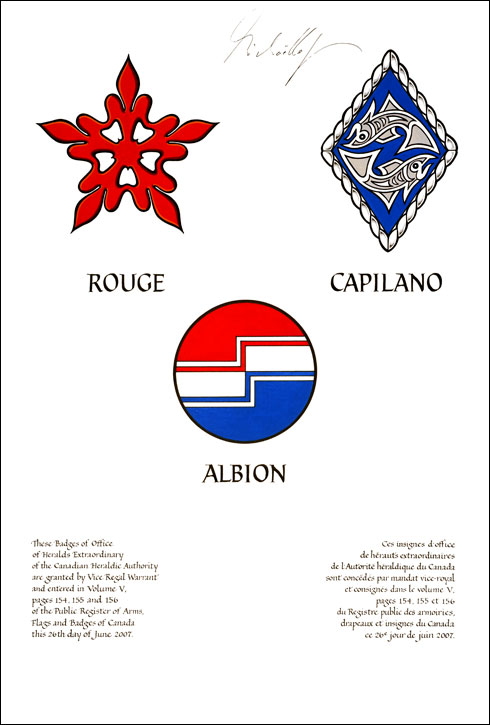 L'utilisation du contenu du Registre public est réservée à des fins de recherche uniquement. Les emblèmes héraldiques du Registre ne peuvent être reproduits sous aucune forme ou par quelque procédé que ce soit sans l'autorisation écrite de l'Autorité héraldique du Canada et/ou du récipiendaire.