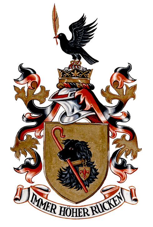 DeviseBlasonIMMER HÖHER RÜCKEN. Cette phrase allemande signifie « Viser toujours plus haut ». |