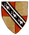 Armoiries de Peter Douglas HannenBlasonÉcartelé de gueules et d'or à une bande de sable chargée de trois mouchetures d'argent posées en bande accostées de deux cotices du même; |