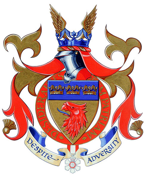 DeviseBlasonDESPITE ADVERSITY, signifiant « Malgré l’adversité »; |