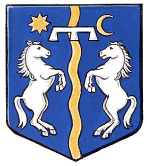 Armoiries de László István Orbán-ImrehBlasonD’azur à la vergette ondée d’or accostée de deux chevaux cabrés affrontés d’argent, accompagnés au canton dextre d’une étoile à huit rais et au canton senestre d’un croissant contourné, le tout d’or; SymbolismeLe fond bleu, l’étoile et le croissant de lune, traditionnellement utilisés par la diaspora sicule hongroise, rendent hommage aux origines de M. Orbán-Imreh et aux nombreux ancêtres sicules de son épouse. Le bleu fait aussi référence à sa province d’origine, l’Alberta, qui est souvent appelée « le pays des ciels infinis »; il fait également allusion à sa conscience environnementale en symbolisant l’air pur, les rivières et l’intégrité de la nature au Canada. L’étoile et la lune symbolisent également le ciel nocturne du sud de l’Alberta et leur combinaison avec la bande ondulée rappelle à M. Orbán-Imreh la Voie lactée. En outre, la bande ondulée représente l’ancienne Cowboy Trail (route 22), dont une petite portion passe par sa propriété. Les deux chevaux représentent les deux côtés de sa famille – les lignées Orbán et Imreh – ainsi que ses deux chevaux. |