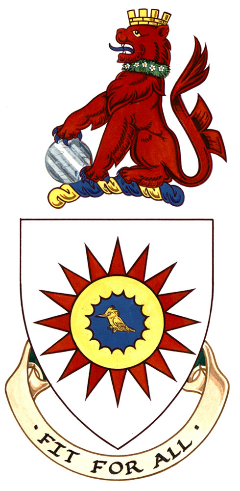 CimierBlasonUn lion assis de gueules ceint d’une couronne murale d’or, colleté d’une guirlande de fleurs de mai au naturel, sa patte posée sur un miroir circulaire du même; SymbolismeL’Autorité héraldique du Canada ne dispose pas de symbolisme confirmé pour cet emblème. Les données qui suivent ne sont que des hypothèses. Le lion rouge fait sans doute référence à celui des armoiries de la Nouvelle-Écosse, province natale du lieutenant-colonel Colwell. La fleur de mai est l’emblème floral de la province. Le miroir fait allusion à l’entreprise familiale : une boutique de vêtements pour hommes. La couronne murale représente le service de son père au sein de l’administration municipale. |
