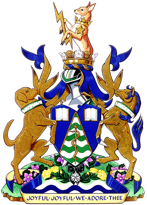 DeviseBlasonJOYFUL JOYFUL WE ADORE THEE, signifiant « Heureux, heureux, nous t’adorons »; |