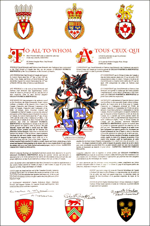 L'utilisation du contenu du Registre public est réservée à des fins de recherche uniquement. Les emblèmes héraldiques du Registre ne peuvent être reproduits sous aucune forme ou par quelque procédé que ce soit sans l'autorisation écrite de l'Autorité héraldique du Canada et/ou du récipiendaire.