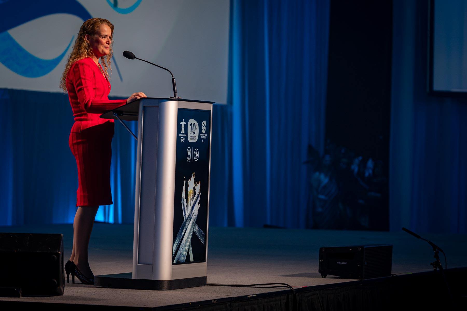 The Governor General met with first responders dealing with the opioid overdose crisis and visited a safe injection site. She then met with the five teens who saved a young boy who was dangling from a chairlift on Grouse Mountain, and presented them with Governor General's Coins. Afterwards, Her Excellency skated with members of the community as part of her GGactive initiative. In the evening, she delivered remarks at the Vancouver 2010 10th Anniversary Gala.