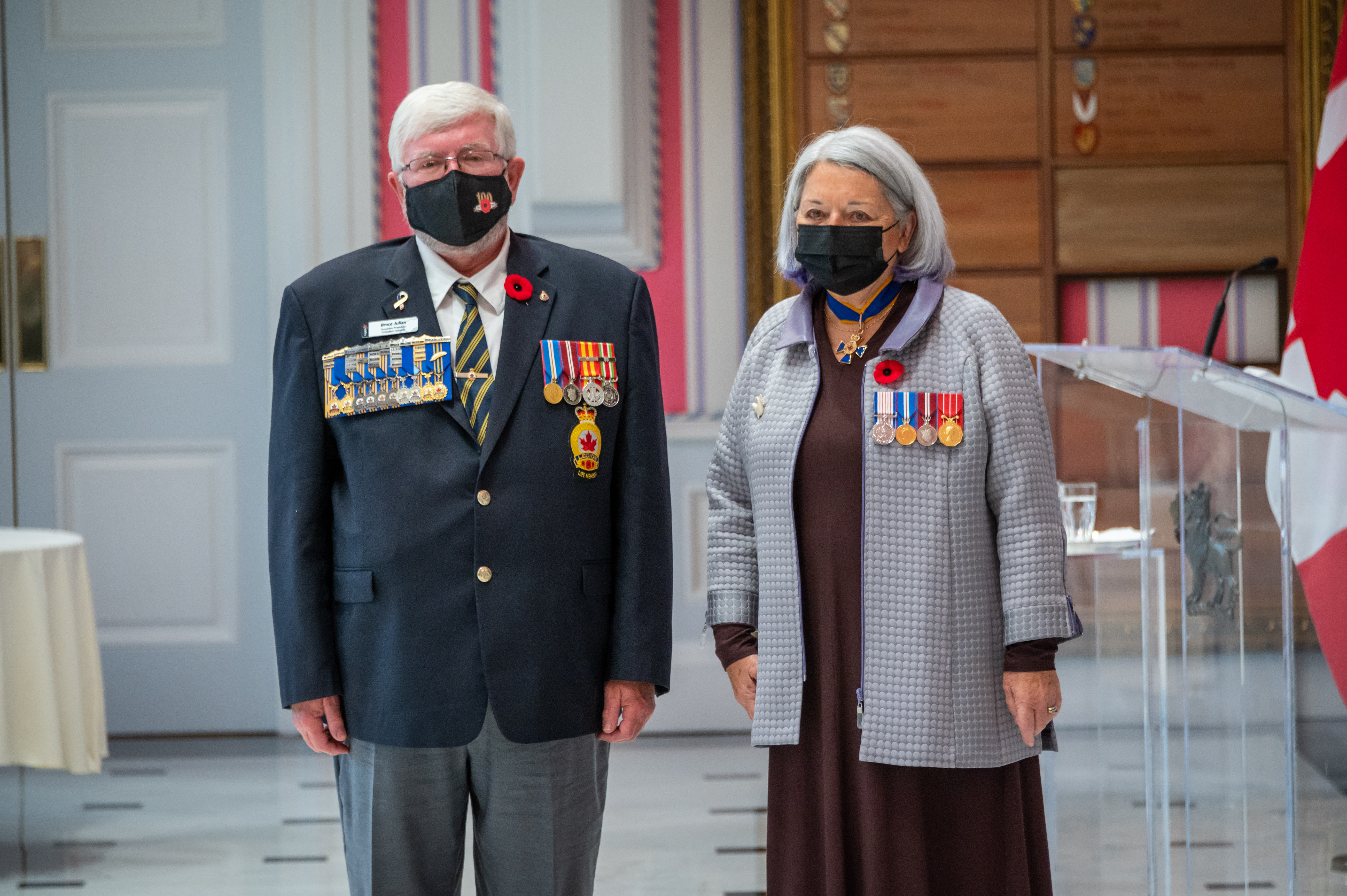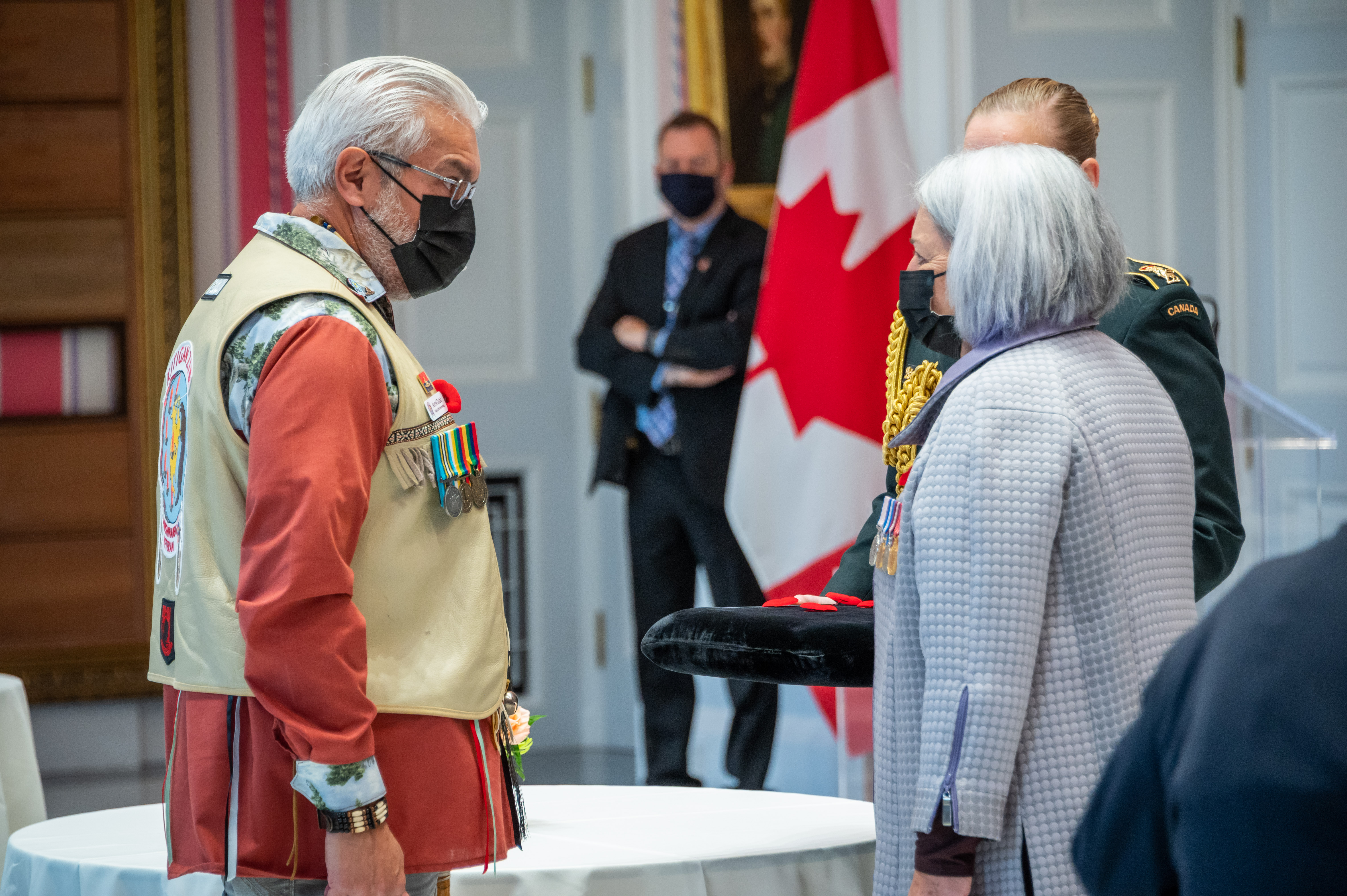 Her Excellency the Right Honourable Mary May Simon, Governor General and Commander-in-Chief of Canada, received the symbolic first poppy of the National Poppy Campaign in a ceremony at Rideau Hall.