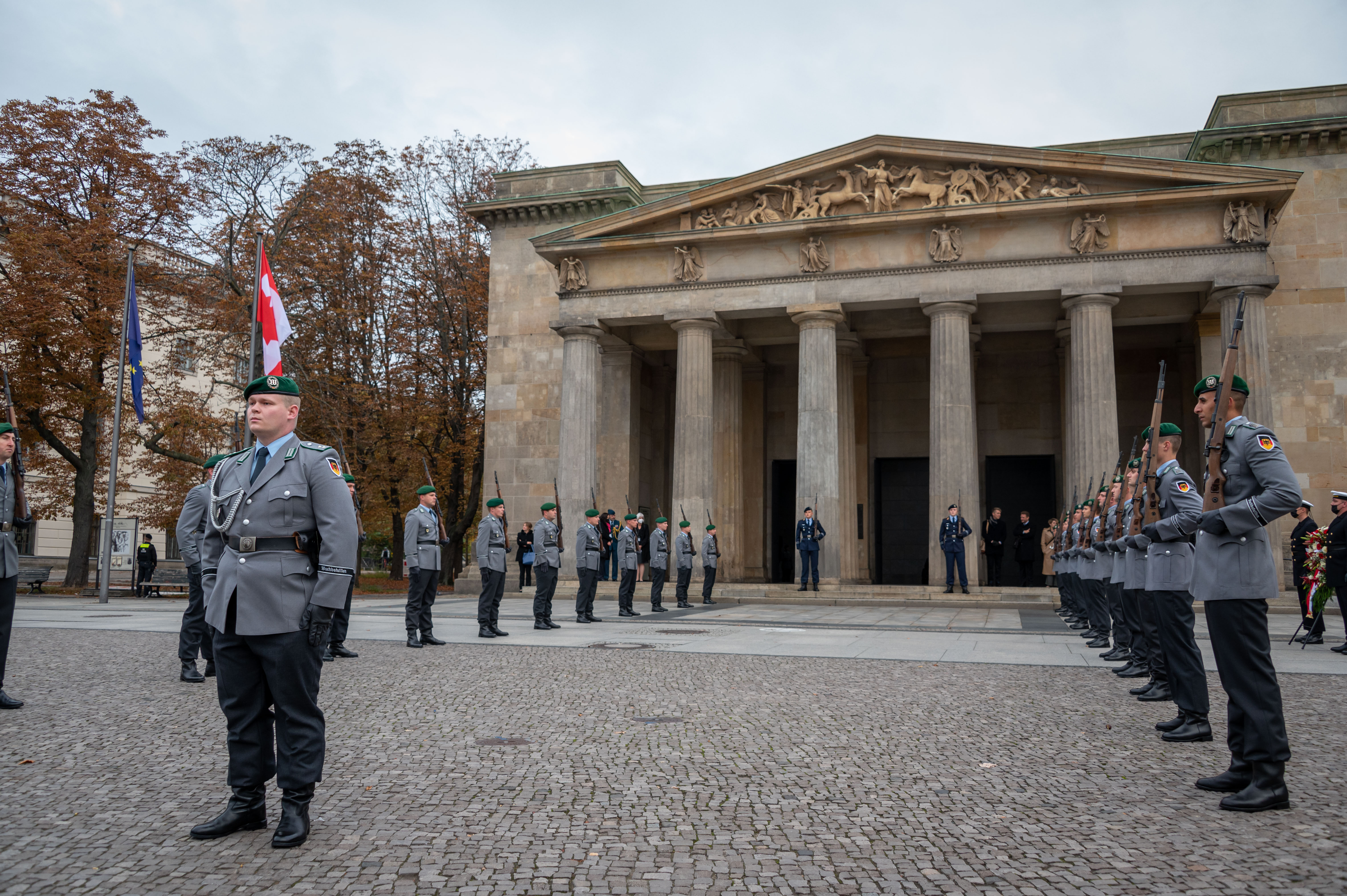 In the morning, the Governor General laid a wreath at the Central Memorial of the Federal Republic of Germany on behalf of Canada to pay respect to the victims of war and tyranny.