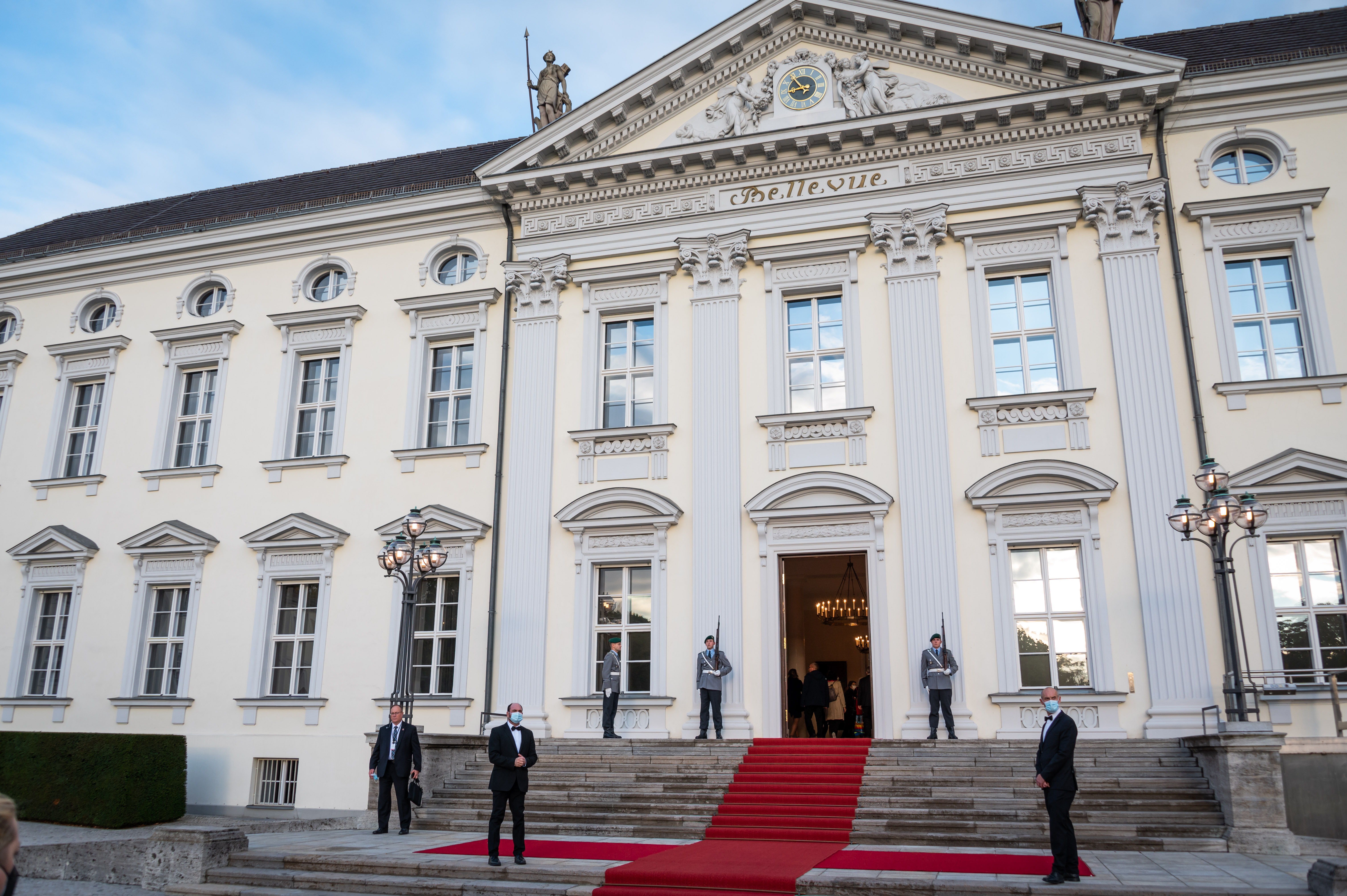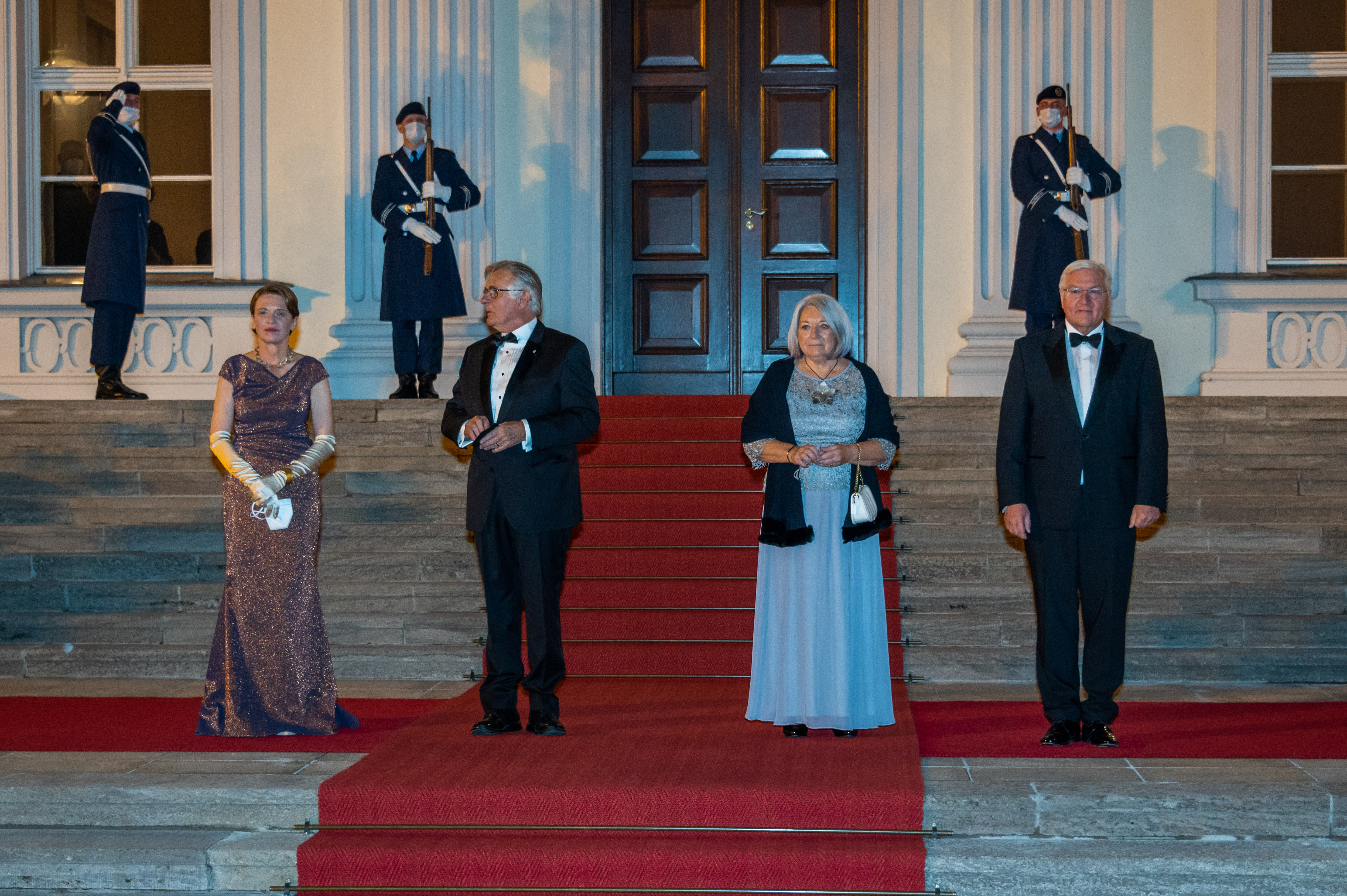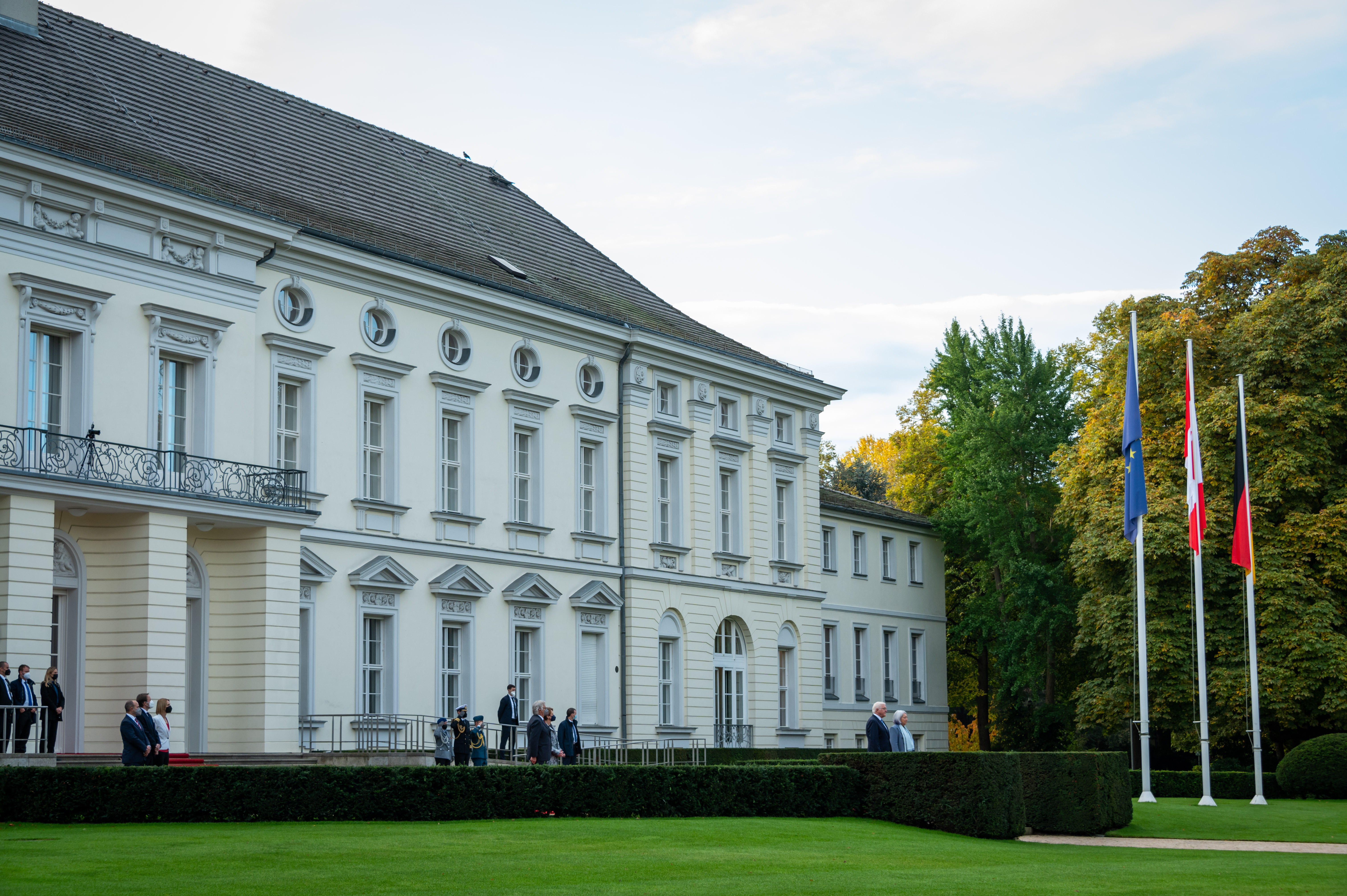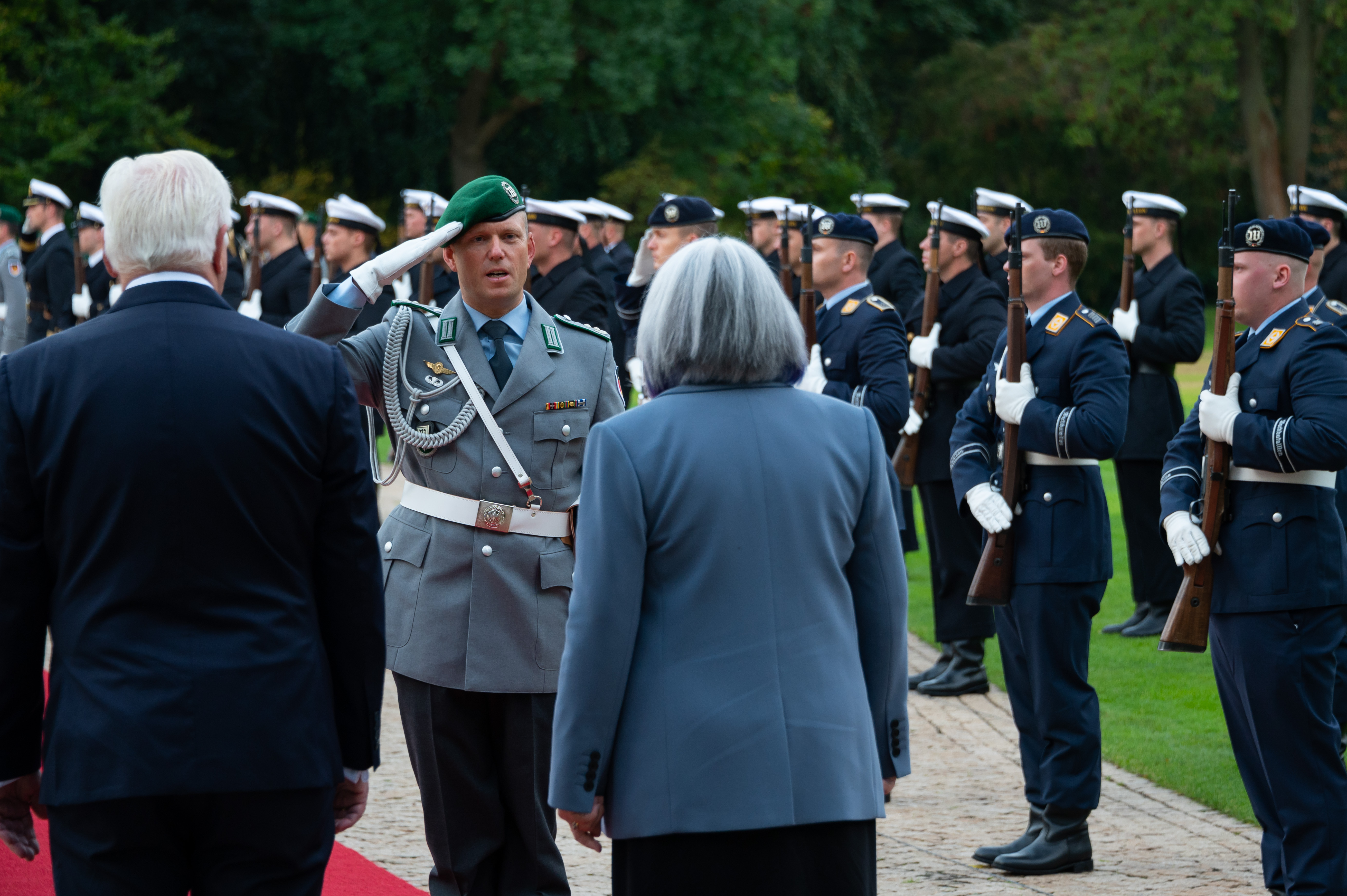 In the morning, the Governor General met with His Excellency Frank-Walter Steinmeier, President of the Federal Republic of Germany. Upon arrival, Their Excellencies signed the guest book and were greeted with a welcome ceremony.