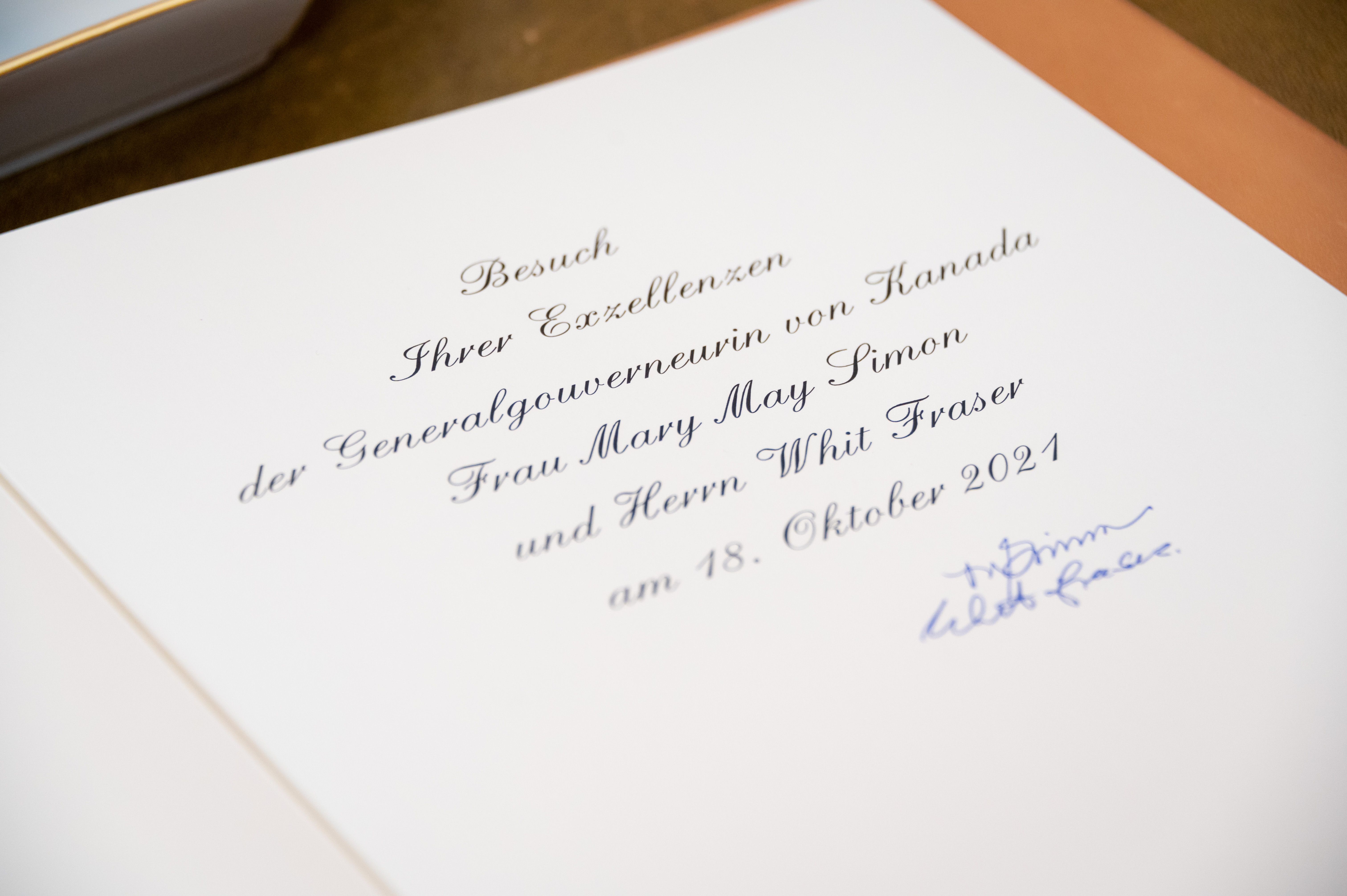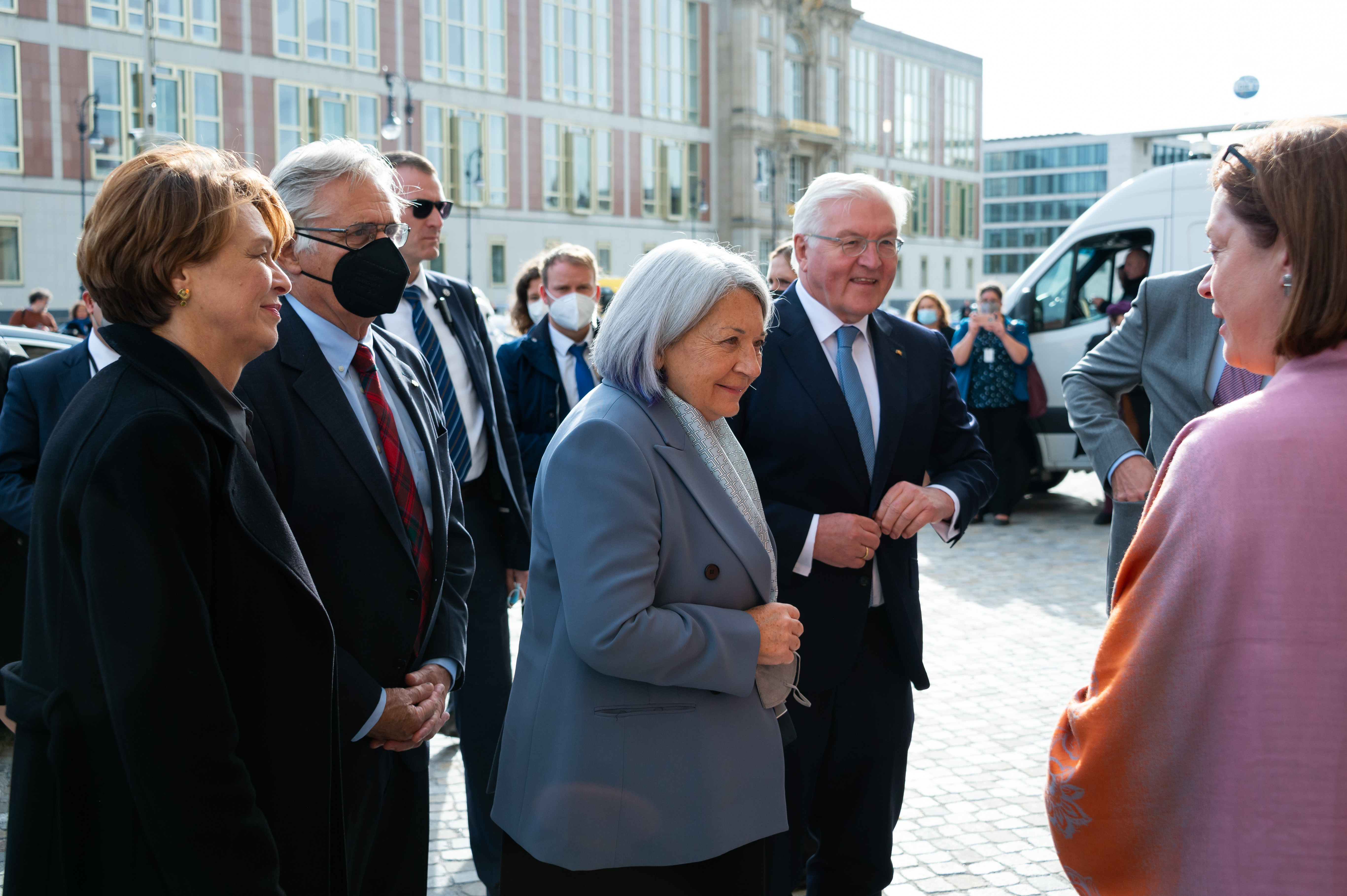 At the request of the Right Honourable Justin Trudeau, Their Excellencies the Right Honourable Mary May Simon, Governor General of Canada, and Mr. Fraser undertook a State visit to the Federal Republic of Germany from October 17 to October 21, 2021, which included stops in Berlin and Frankfurt.