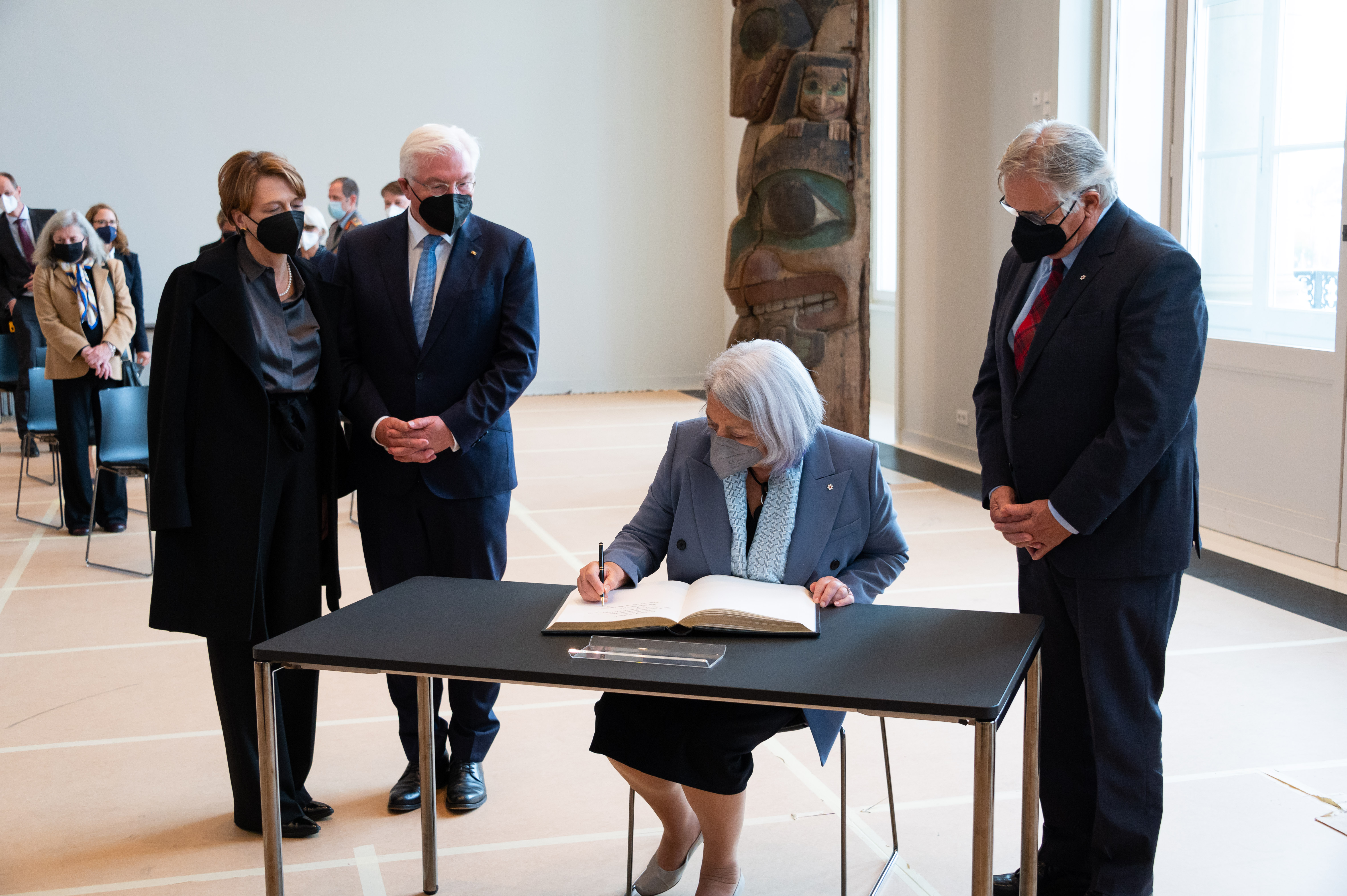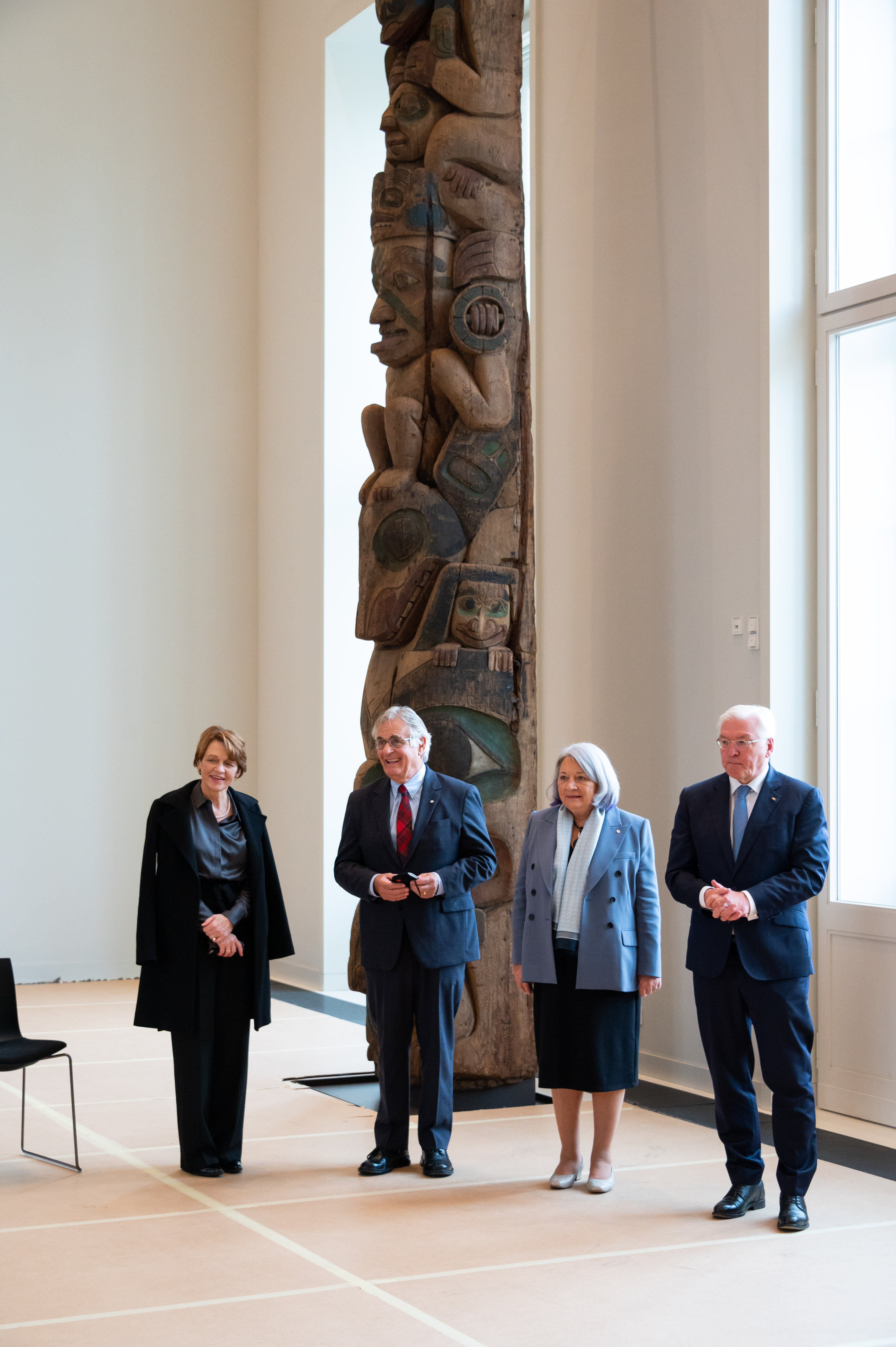 In the afternoon, Their Excellencies and the President of Germany visited an exhibit at the Humboldt Forum that features Canadian artefacts, including two West Coast Indigenous totem poles.
