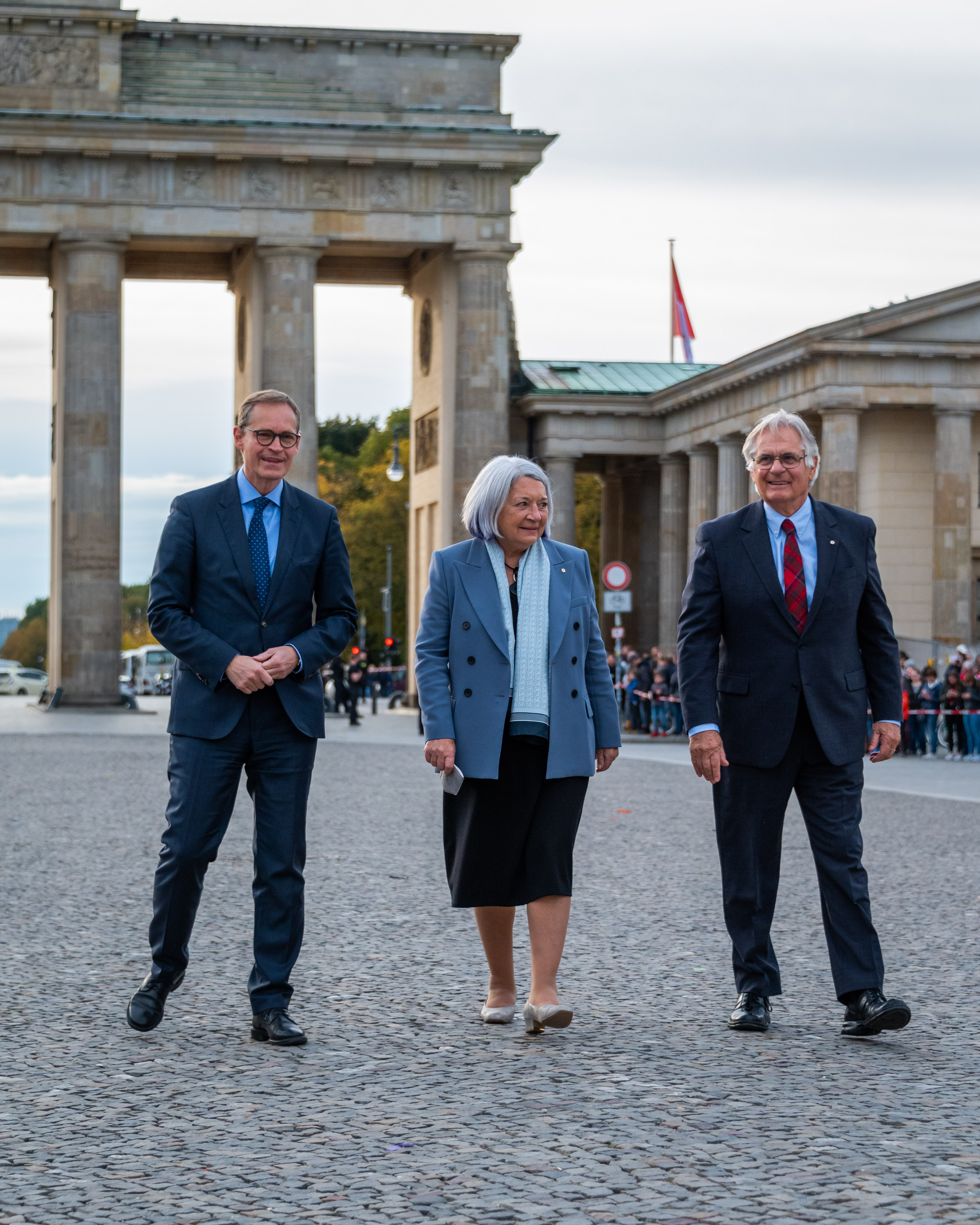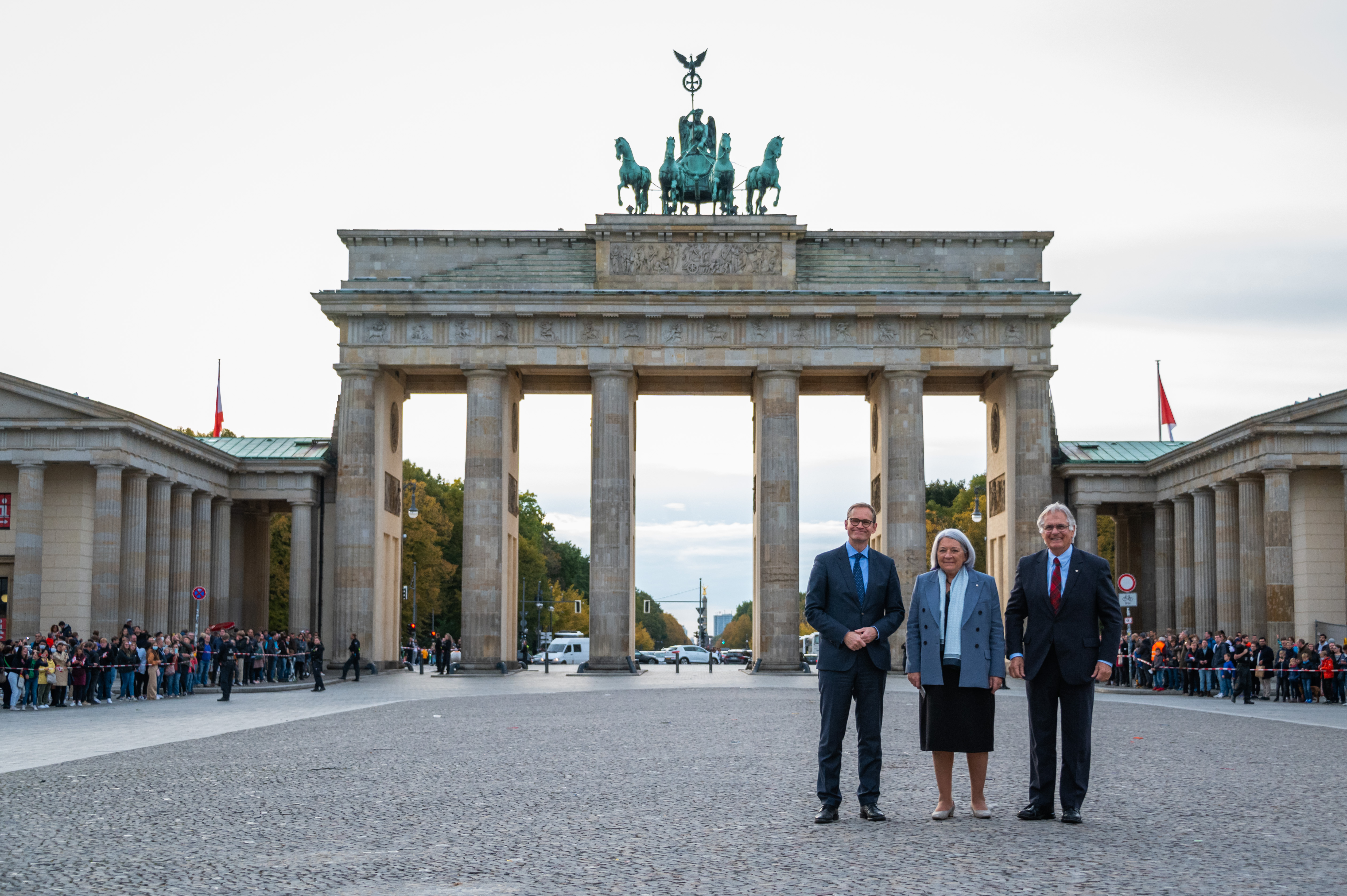 Their Excellencies then met with Mr. Michael Müller, Governing Mayor of Berlin, at the Brandenburg Gate. Together, they toured this historical landmark, which today stands as a national symbol of peace and unity.