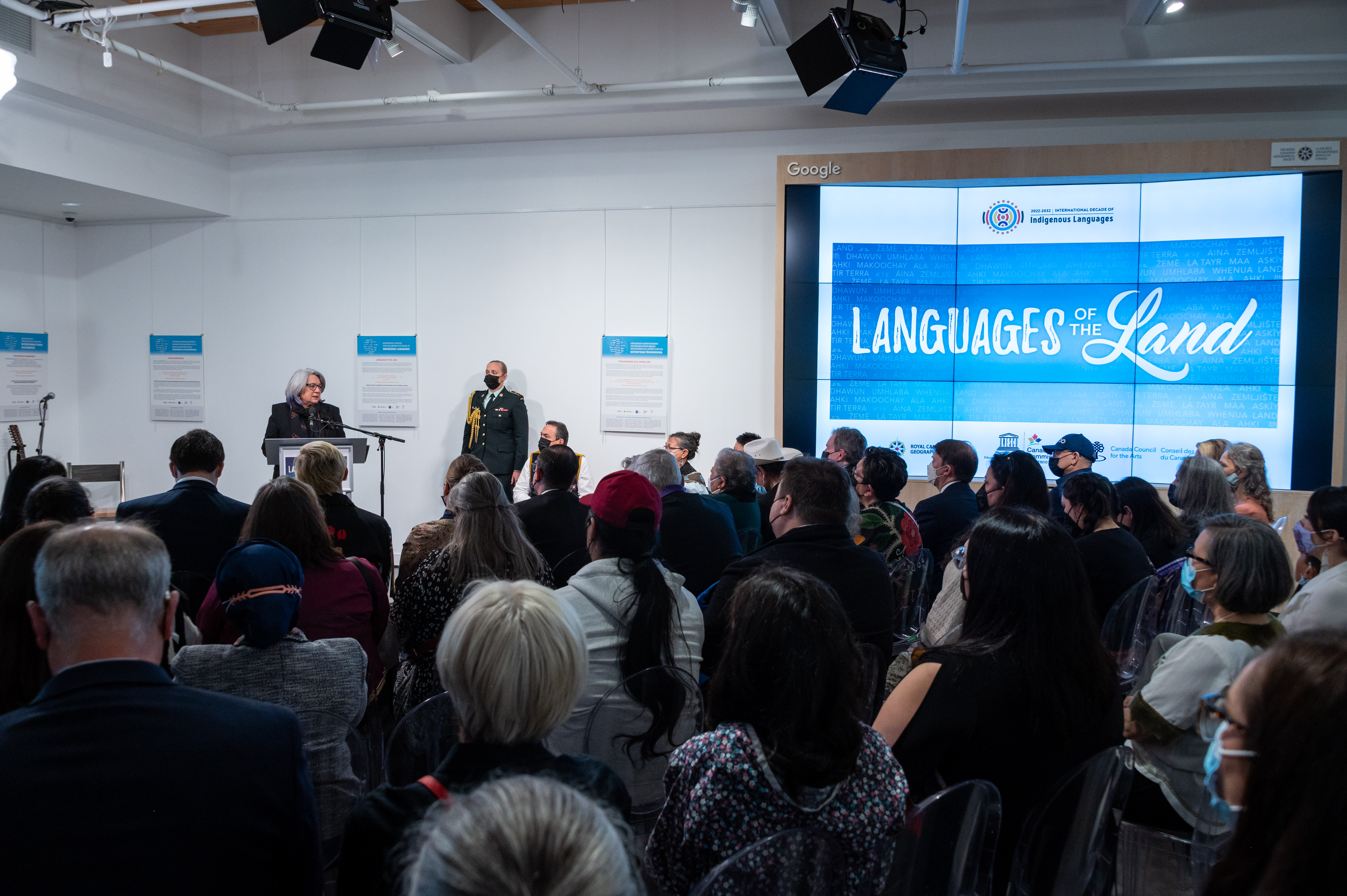 Her Excellency the Right Honourable Mary Simon, Governor General of Canada, spoke at the Canadian launch of the International Decade of Indigenous Languages. Her Excellency joined Indigenous leaders, academics, diplomats, representatives from various organizations and youth to mark this significant milestone. The event, entitled Languages of the Land, was co-hosted by the Royal Canadian Geographical Society, the Canadian Commission for UNESCO and the Canada Council for the Arts.