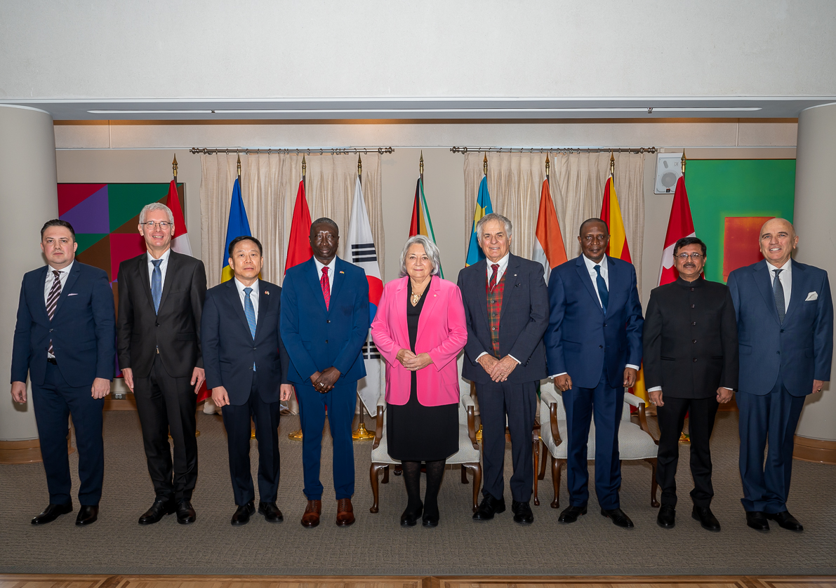 Her Excellency the Right Honourable Mary Simon, Governor General of Canada, welcomed seven new heads of mission to Canada during a ceremony at the Residence of the Governor General at the Citadelle of Québec.