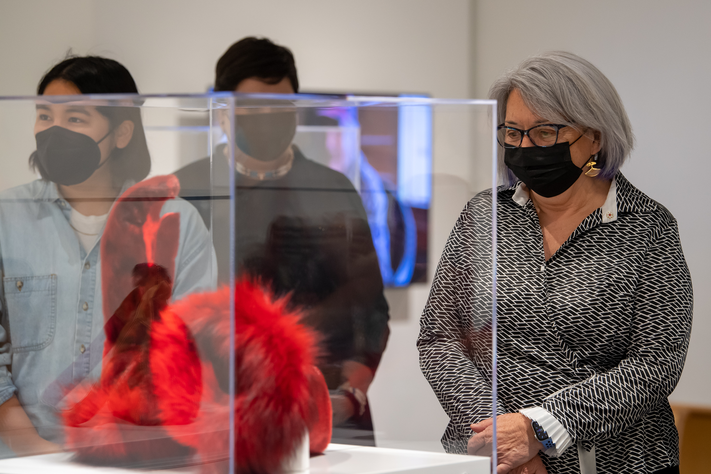#GGSimon was delighted to visit the TETHER exhibit @YukonArtsCentre. This collection of artworks by northern Indigenous artists shows the complex interconnections that exist across the Arctic.#ArcticArtsSummit2022 pic.twitter.com/GXKZ3GyKGz
