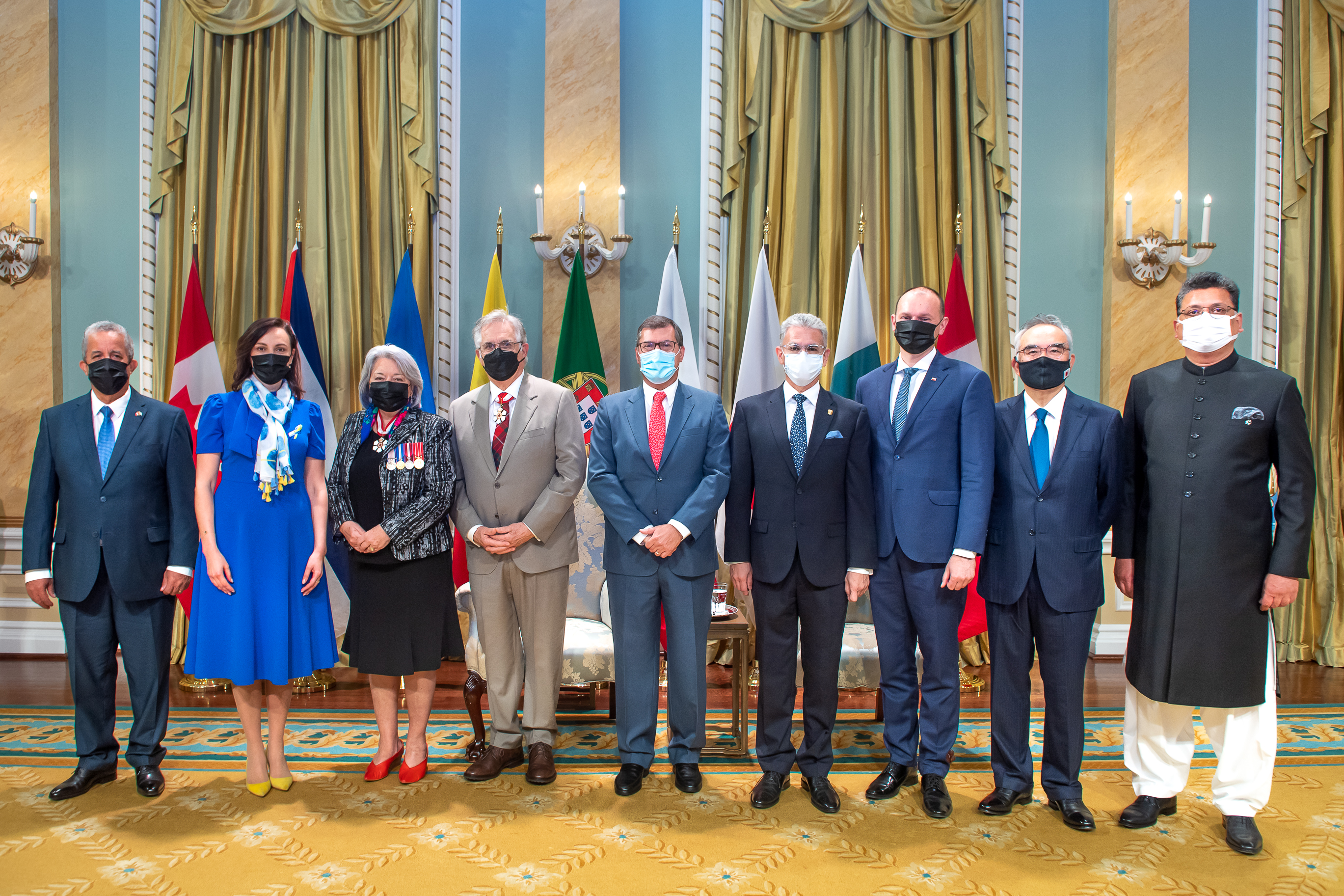 Her Excellency the Right Honourable Mary Simon, Governor General of Canada, welcomed seven new heads of mission to Canada during a ceremony at Rideau Hall.