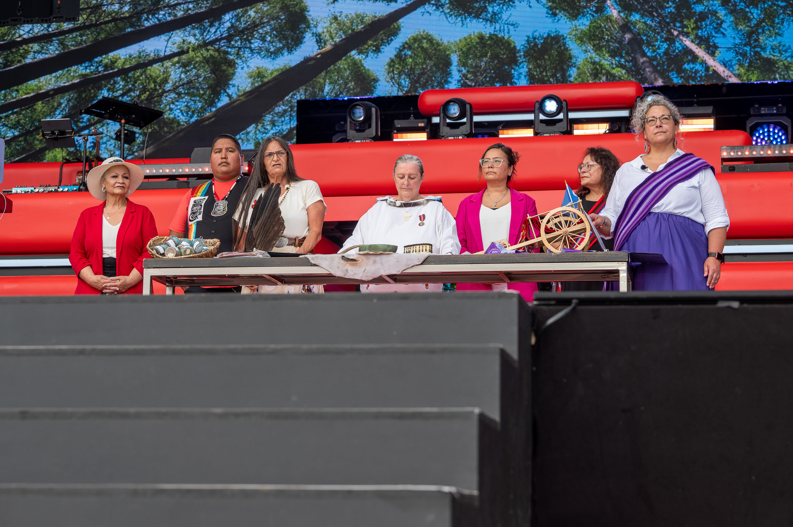 Their Excellencies began the day by participating in an Indigenous Reflection ceremony, which included teachings from First Nations, Inuit and Métis Elders. After, the Governor General delivered remarks at the daytime ceremony.