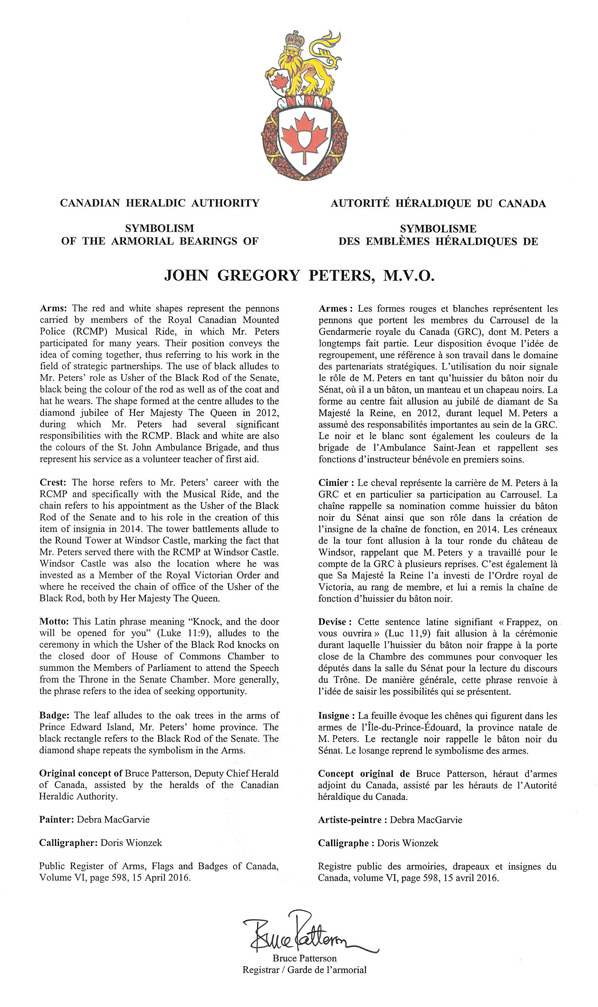 - In the following 6 to 12 months, the emblems are added to the online version of the Public Register of Arms, Flags and Badges of Canada.