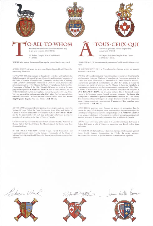 Additional InformationCreator(s)Original concept of Robert D. Watt, Chief Herald of Canada, assisted by the Heralds of the Canadian Heraldic Authority PainterDavid Farrar CalligrapherNancy Ellis Recipient TypeIndividual |