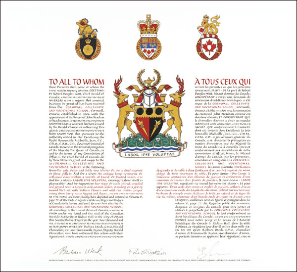 Additional InformationCreator(s)Original concept of Darrel Kennedy, Assiniboine Herald, assisted by the Heralds of the Canadian Heraldic Authority. PainterIlona Jurkiewicz CalligrapherNancy Ellis Recipient TypeCivil Institution