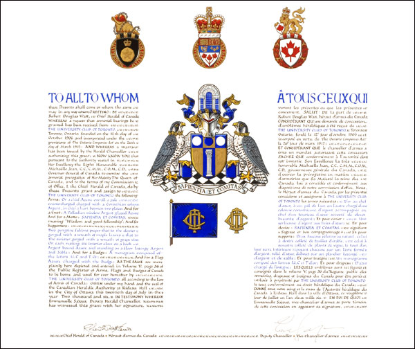 Additional InformationCreator(s)Original concept of Bruce Patterson, Saguenay Herald, assisted by the Heralds of the Canadian Heraldic Authority. PainterGordon Macpherson CalligrapherHeather Taylor Recipient TypeCivil Institution
