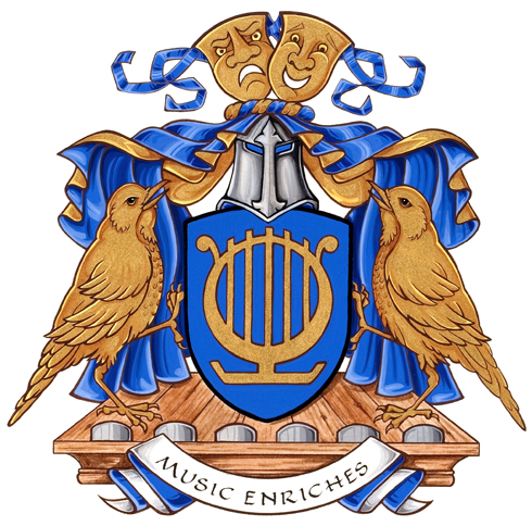 SupportersBlazonTwo song-birds Or standing on a stage set with footlights proper; SymbolismThe songbirds and the stage combine the musical and dramatic elements of the Society’s productions. |