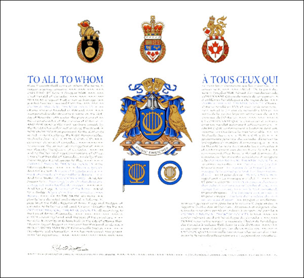 Additional InformationCreator(s)Original concept of Bruce Patterson, Saguenay Herald, assisted by the heralds of the Canadian Heraldic Authority. PainterDebra MacGarvie CalligrapherDoris Wionzek Recipient TypeCivil Institution