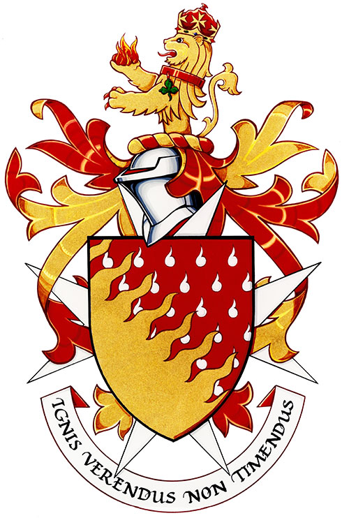 MottoBlazonIGNIS VERENDUS NON TIMENDUS; SymbolismThis Latin phrase means “Fire is to be respected, not to be feared”. |
