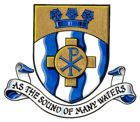 MottoBlazonAS THE SOUND OF MANY WATERS; SymbolismThis is taken from Revelation 1:15 and is a reference to the voice of Christ. It can also allude to the sound of the nearby Niagara Falls, and carries with it the idea, from Revelation 19:6 of many coming together as one. |
