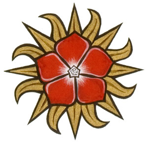 Arms of Keith William JamesBlazonAzure a periwinkle flower Gules seeded Argent en soleil Or; SymbolismThe periwinkle flower is the source of several drugs that Dr. James administers to chemotherapy patients in his practice of clinical oncology. The rays allude to radiation therapy. |