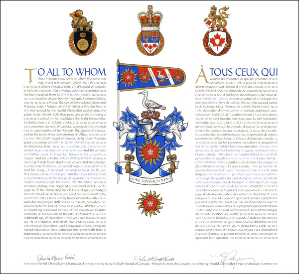 The contents of this Register are intended for research purposes only. The heraldic emblems found in the Register may not be reproduced in any form or in any media without the written consent of the Canadian Heraldic Authority and/or the recipient.