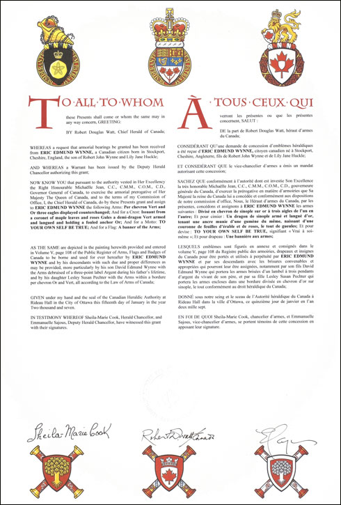 Grant of Arms and Flag, with differences to David Edmund Wynne and Lesley Susan Pechter