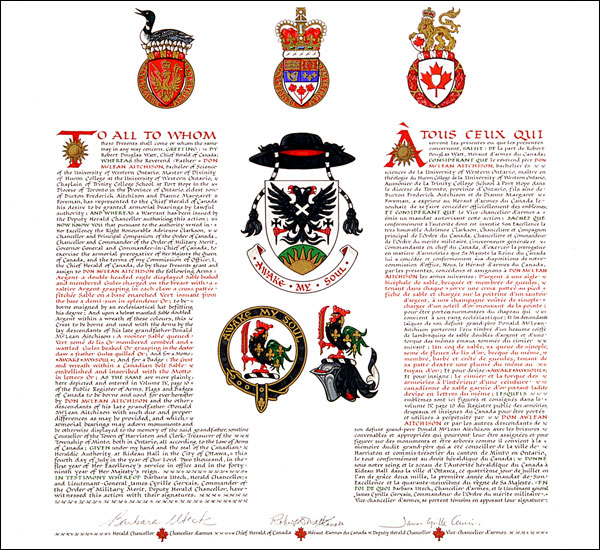 Additional InformationCreator(s)Original concept of David Bowyer, assisted by the heralds of the Canadian Heraldic Authority. PainterDavid Bowyer CalligrapherJudith Bainbridge Recipient TypeIndividual |