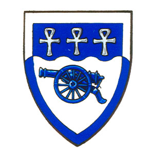 Arms of Frederick Norman RigbyBlazonArgent a field battery gun, on a chief wavy Azure three ankhs Argent; SymbolismThe wavy chief line refers to Dr. Rigby’s home in a city by the sea. The main colours of white and blue are the two colours of Dr. Rigby’s regiment, the Royal Regiment of Artillery. The gun represents his military service generally and as a gunner more specifically. The ankhs are symbols of his profession as a physician, with the three referring to himself and his two children. |