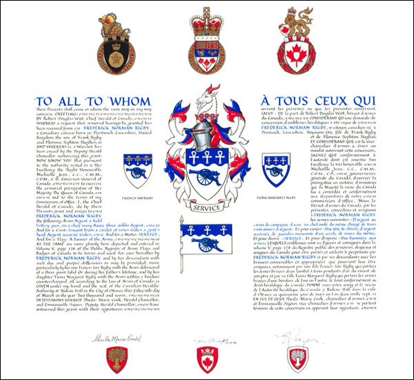 Additional InformationCreator(s)Original concept of Robert D. Watt, Chief Herald of Canada, assisted by the heralds of the Canadian Heraldic Authority. PainterD. Robert Tunstall CalligrapherNancy Ellis Recipient TypeIndividual |