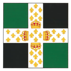 Flag of the Regiment of La ReineBlazonQuarterly Vert and Sable on a cross Argent semé-de-lis Or four French royal crowns in cross their bases inward proper; SymbolismThe flag shown here is one of the historic flags of Canada in that it flew, or was believed to have flown, in what is today Canada. It has been selected along with 14 other flags to be included on a poster showing a selection of historical flags of New France. |