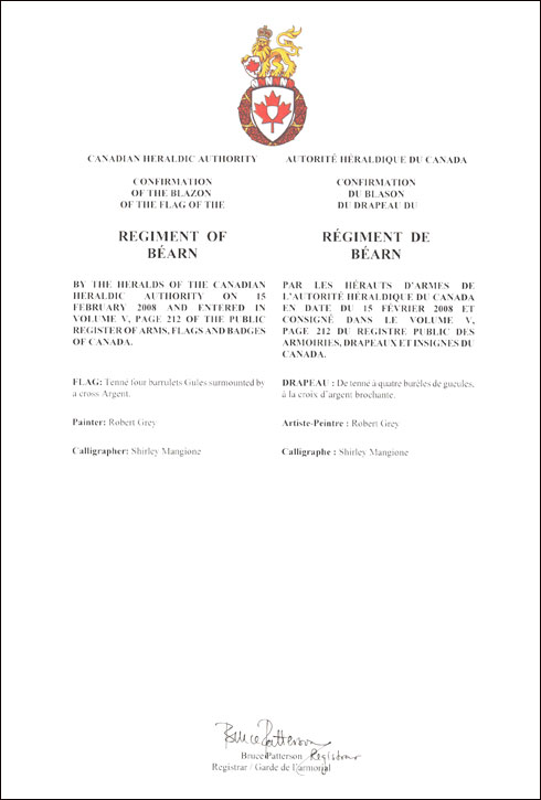 The contents of this Register are intended for research purposes only. The heraldic emblems found in the Register may not be reproduced in any form or in any media without the written consent of the Canadian Heraldic Authority and/or the recipient.