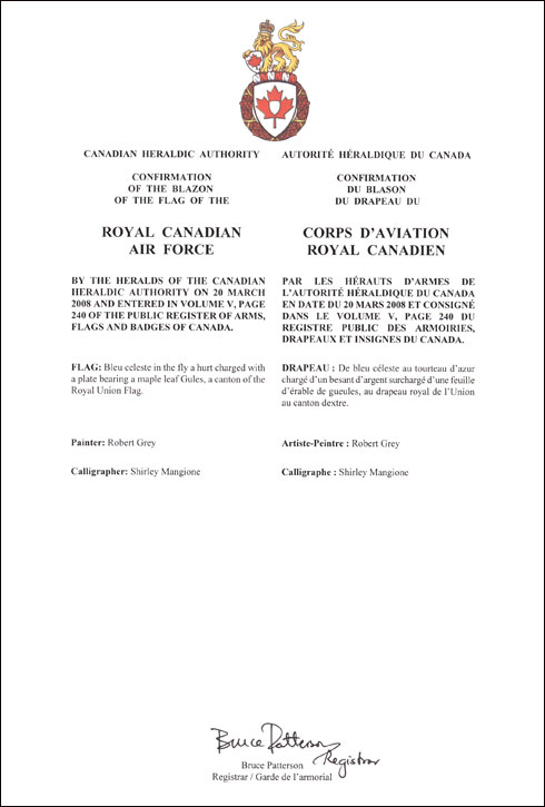 The contents of this Register are intended for research purposes only. The heraldic emblems found in the Register may not be reproduced in any form or in any media without the written consent of the Canadian Heraldic Authority and/or the recipient.