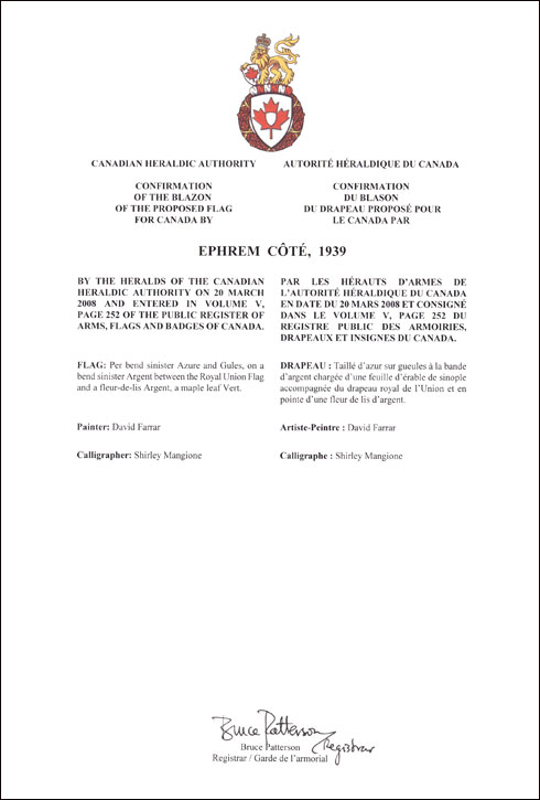 Confirmation of the blazon of a Flag
