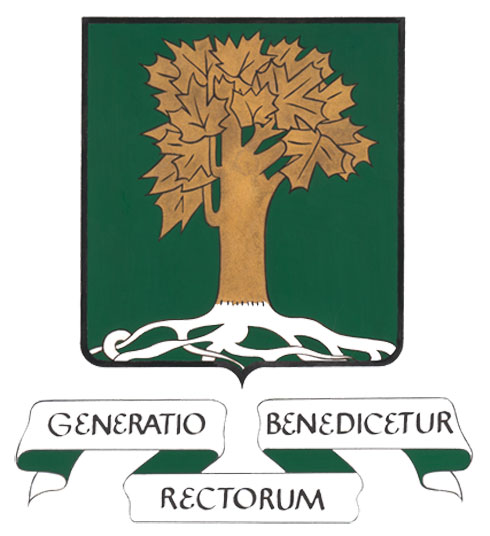 MottoBlazonGENERATIO RECTORUM BENEDICETUR; SymbolismGENERATIO RECTORUM BENEDICETUR, meaning “The generation of the righteous shall be blessed,” is taken from Psalm 111:2 of the Vulgate Bible. |