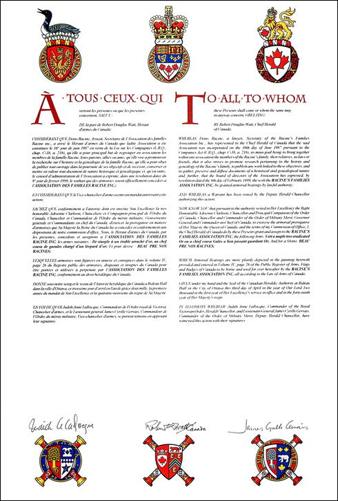 Additional InformationCreator(s)Original concept of Lucien Godbout, assisted by the heralds of the Canadian Heraldic Authority. PainterIlona Jurkiewicz CalligrapherJudith Bainbridge Recipient TypeCivil Institution