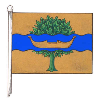 Arms of QuispamsisBlazonOr a maple tree Vert, overall a fess wavy Azure charged with a gondola Or; SymbolismThe colour of the shield represents the sunlight that is the life-giving force to all. The tree represents natural vegetation of the area. The wave alludes to the name Quispamsis, meaning “little lake” in the Maliseet language, representing Ritchie Lake. The wave also represents the Kennebecasis River which has been the major influence in the region for the transportation of goods and lumber as well as modern recreation. The gondola is a raft that was used in the logging days on the river and carried passengers, goods and people. This mode of transport gave its name to Gondola Point, one of the component municipalities that merged to form the new town of Quispamsis. |