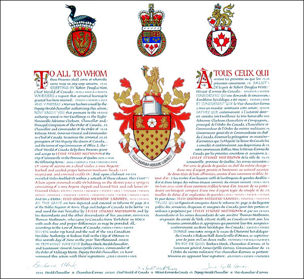The contents of this Register are intended for research purposes only. The heraldic emblems found in the Register may not be reproduced in any form or in any media without the written consent of the Canadian Heraldic Authority and/or the recipient.