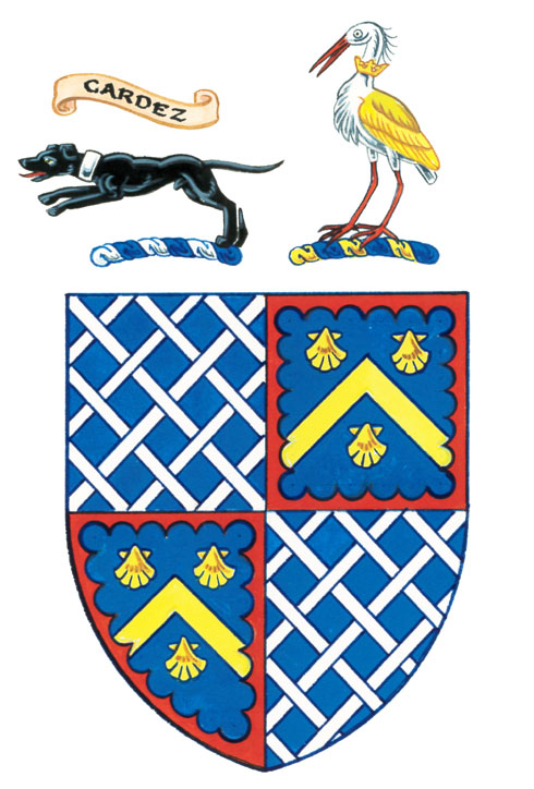 Arms of Robert Cave-Browne-CaveBlazonQuarterly first and fourth Azure fretty Argent (for Cave) second and third Azure a chevron between three escallops Or a bordure engrailed Gules (for Browne); SymbolismNot available; |