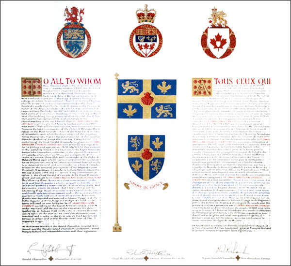 Additional InformationCreator(s)Original concept of Robert D. Watt, Chief Herald of Canada, assisted by the heralds of the Canadian Heraldic Authority. PainterJoan Bouwmeester CalligrapherJoan Bouwmeester Recipient TypeCivil Institution