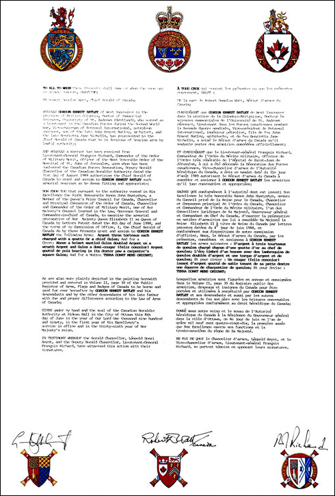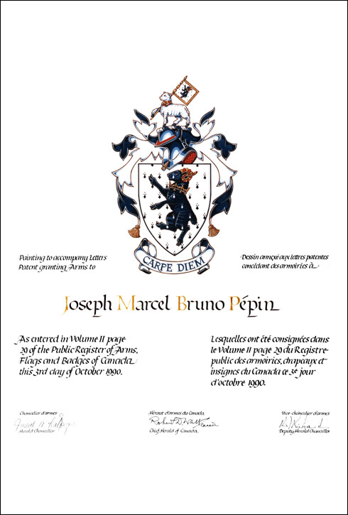 Additional InformationCreator(s)Original concept of Joseph Marcel Bruno Pépin, assisted by the heralds of the Canadian Heraldic Authority. PainterDavid Farrar CalligrapherJohn Whitehead Recipient TypeIndividual |