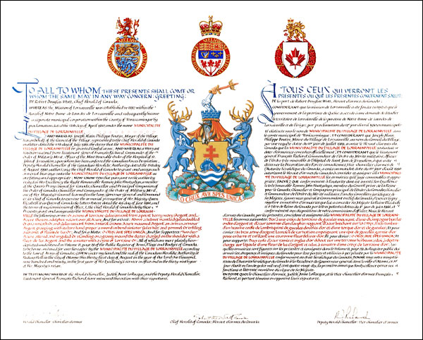 Additional InformationCreator(s)Original concept of Robert D. Watt, Chief Herald of Canada, assisted by the heralds of the Canadian Heraldic Authority. PainterAnatol Kozlowski CalligrapherJohn Whitehead Recipient TypeCivil Institution