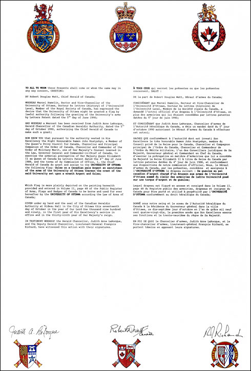 Additional InformationCreator(s)Original concept of Robert D. Watt, Chief Herald of Canada, assisted by the heralds of the Canadian Heraldic Authority. PainterDavid Farrar CalligrapherJohn Whitehead Recipient TypeCivil Institution