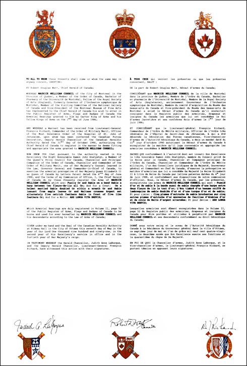 The contents of this Register are intended for research purposes only. The heraldic emblems found in the Register may not be reproduced in any form or in any media without the written consent of the Canadian Heraldic Authority and/or the recipient.