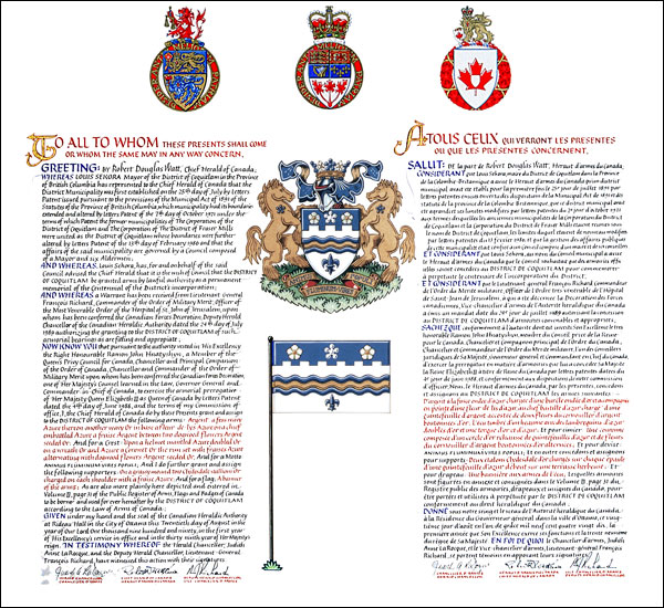 Additional InformationCreator(s)Original concept of Graham Anderson, assisted by the heralds of the Canadian Heraldic Authority. PainterAlastair Priestly CalligrapherIrene Alexander Recipient TypeCivil Institution