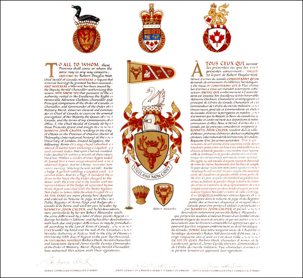 Grant of Arms, Flag and Badge, with differences to Robert Alexandre Calder